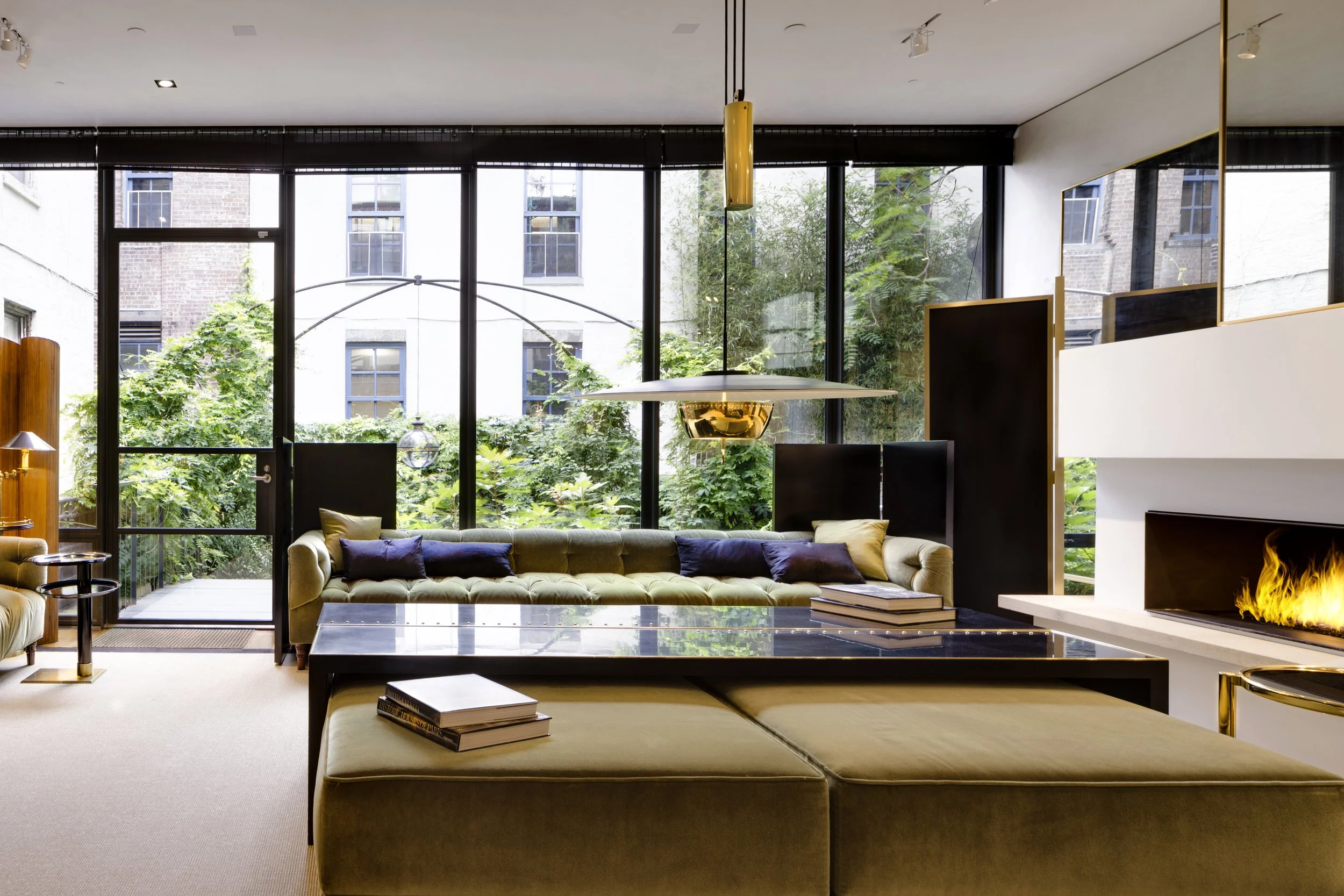 The home's conceptual basis is the combination of new and old, from heavy to light, featuring a transition from the heavy restored brick facade to transparent steel curtain wall of the rear facade. Excavation of the garden's ground level took place to reveal natural light to the home's lower level, while introducing a steel bridge allowed the parlor level to be claimed as the primary level of entry for guests, unique for New York townhomes.